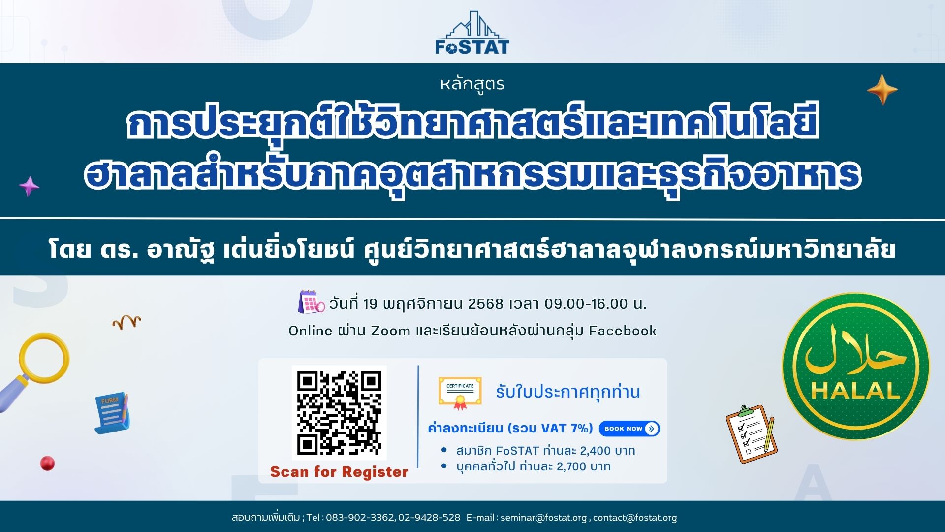 หลักสูตร การประยุกต์ใช้วิทยาศาสตร์และเทคโนโลยีฮาลาล สำหรับภาคอุตสาหกรรมและธุรกิจอาหาร
